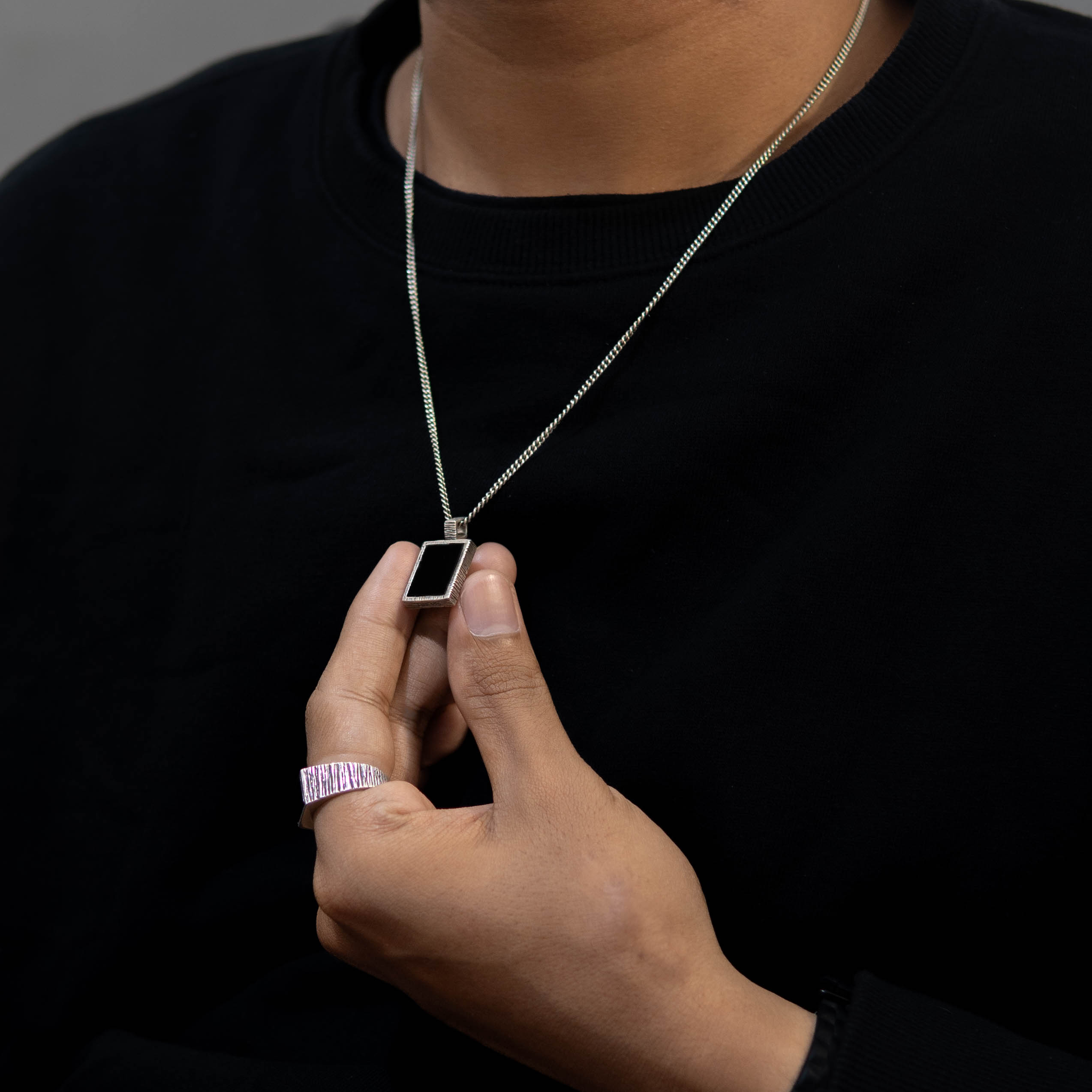 - This design is featured with a flat Black Onyx gemstone in 8 mm diameter